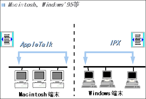 以下に代表的なネットワークOSである、WindowsNT、95とNetWare について紹介します。