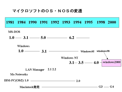 マイクロソフトのネットワークOSは、MS−Networks、LAN Manager と進化してきましたが、1994年にはLAN Managerの機能とWindowsの 機能を包含するOSとしてWindowsNTを発表しました。