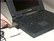パソコンから10BASE5に接続する時は、10BASE5の同軸ケーブルに トランシーバを噛ませ、そこにパソコンからのケーブル(AUIケーブル)を接続します。